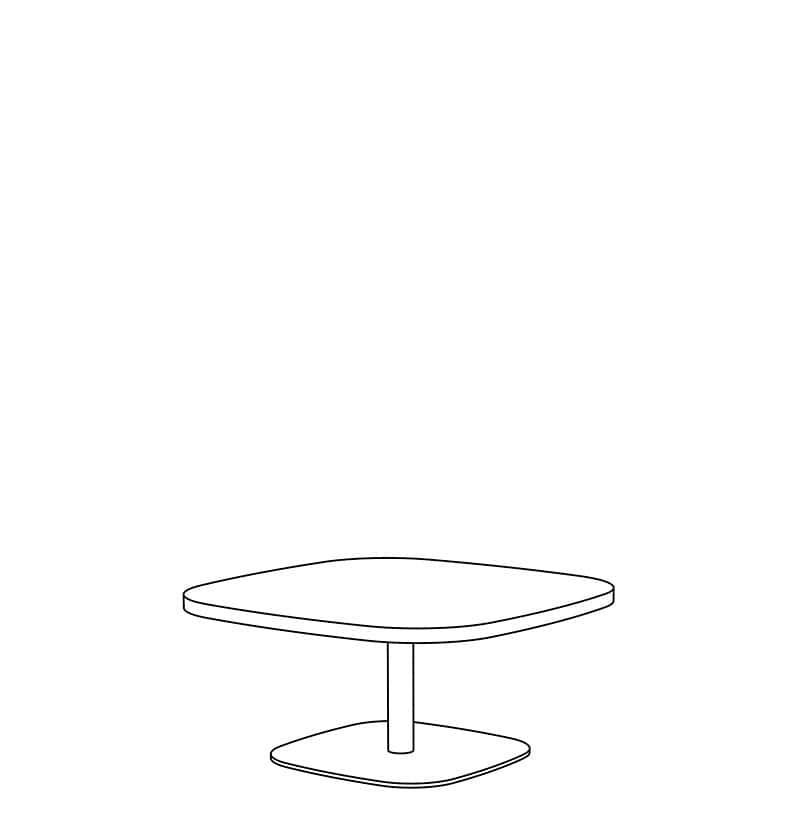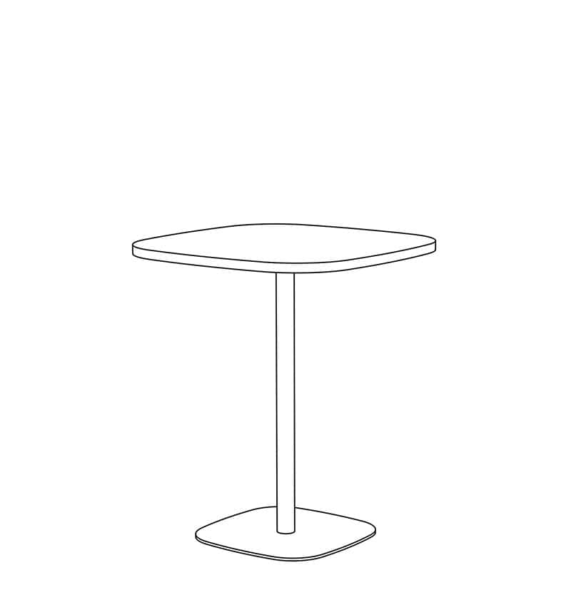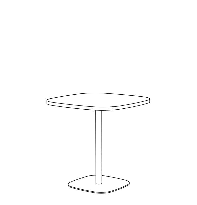 Brae Occasional height tables with limited Custom height available. Top shape in Rounded-Square is standard. Non-standard and Custom top shapes available. Standard tops with 0.5" thick Mini-Facet edge in Laminate, Wood Veneer & Solid Surface, and 1.0" thick Facet edge in Laminate & Wood Veneer are available. Base height is 16", 18" & 20" with a 1.5" & 2" diameter steel column and a 18" & 22" rounded-square 0.375" thick steel base plate. White nylon carpet glide (GNC) is standard. Base is standard in Powder Coat finishes. Chrome and Premium Plated finishes are optional. Custom finishes available. Modifications on request.