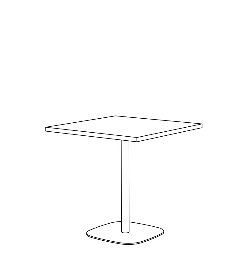 Brae Dining height tables with Counter, Bar, and Custom height available. Top shapes in Round, Square, Rounded-Square, Rectangle, and Rounded-Rectangle are standard. Non-standard and Custom top shapes available. Standard tops are 1.25" thick in Laminate, Wood Veneer, and Solid Surface (1" edge), and 1.5" thick in Wood Butcher Block and Quartz (0.75" edge). Flat, Bullnose, & Prism edges are standard. Base height is 28" with a 2", 2.5" & 3" diameter steel column and a 18", 22" & 26" rounded-square 0.375" thick steel base plate. White nylon carpet glide (GNC) is standard. Base is standard in Powder Coat finishes. Chrome and Premium Plated finishes are optional. Custom finishes available. Modifications on request.