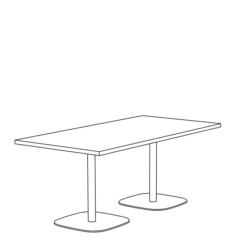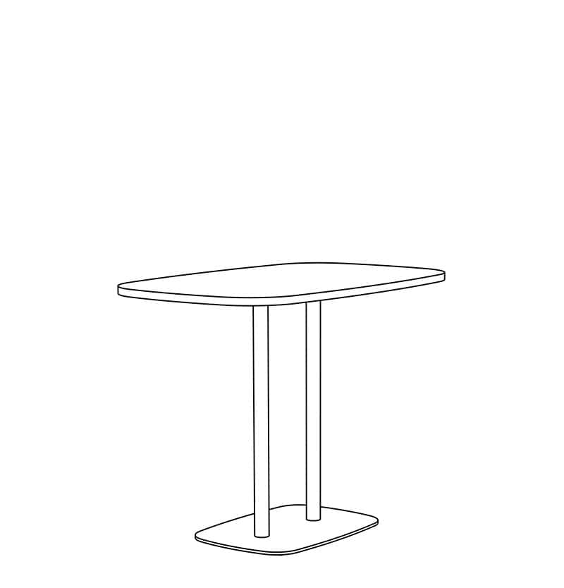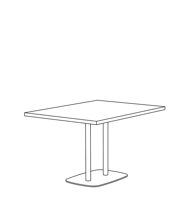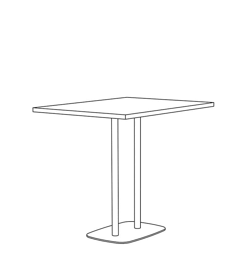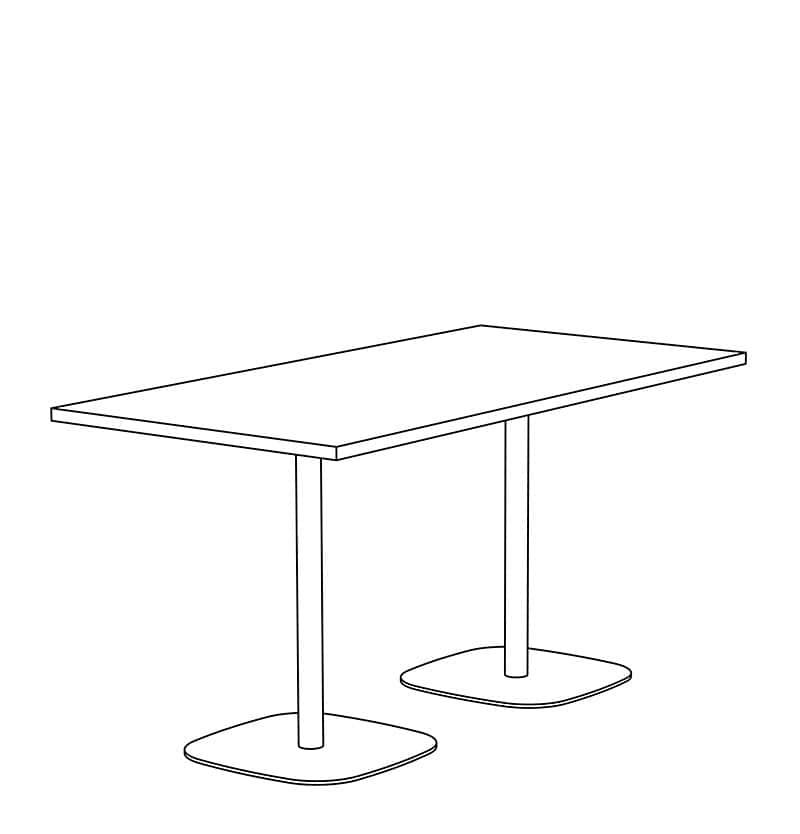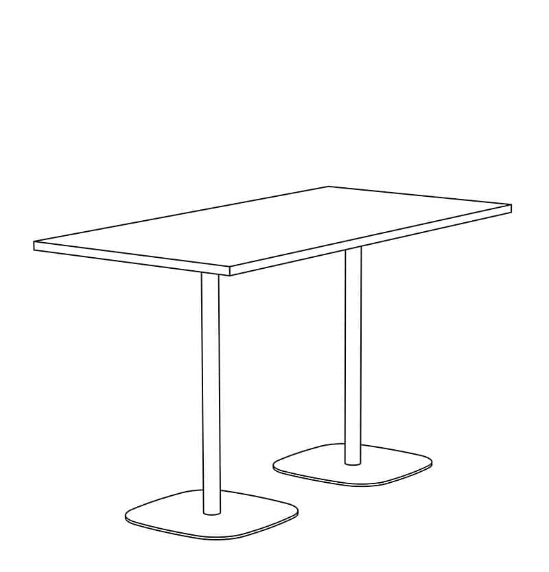 Brae Double Dining height tables with Counter, Bar, and Custom height available. Top shapes in Rectangle and Rounded-Rectangle are standard. Non-Standard and Custom top shapes available. Standard tops are 1.25" thick in Laminate, Wood Veneer, and Solid Surface (1" edge), and 1.5" thick in Wood Butcher Block and Quartz (0.75" edge). Flat, Bullnose, & Prism edges are standard. Base height is 28" with (2) 2" diameter steel columns and a 18"x26" & 18"x32" rounded-rectangle 0.375" thick steel base plate. White nylon carpet glide (GNC) is standard. Base is standard in Powder Coat finishes. Chrome and Premium Plated finishes are optional. Custom finishes available. Modifications on request.