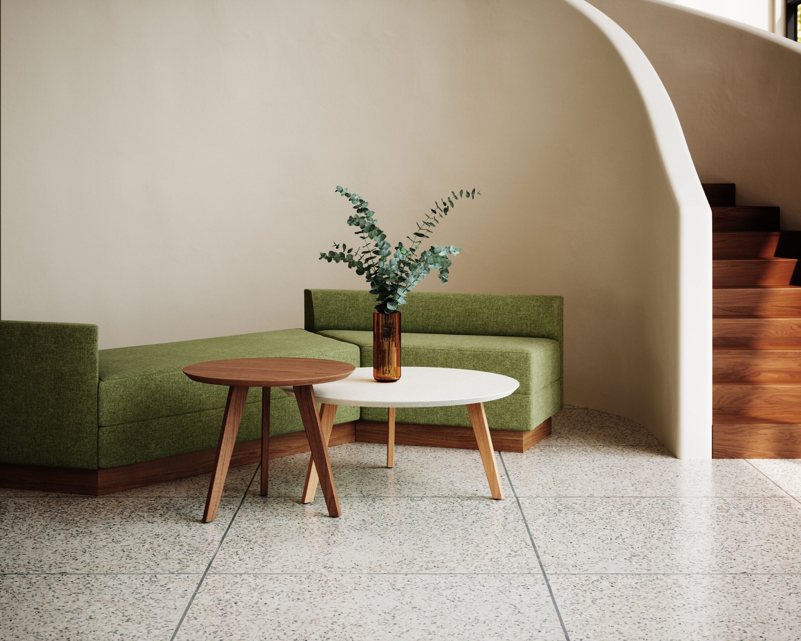 This fresh design pays tribute to the iconic three-legged table. It is simple, elegant, and inviting. Its balanced geometry and sculptural silhouette offer a refined take on minimalism. Designed for versatility, it excels in both form and function, bringing warmth and clarity to any space.